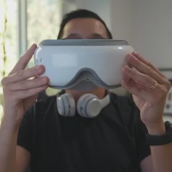 - Place the Smart Eye Massager over your eyes and adjust the fit.